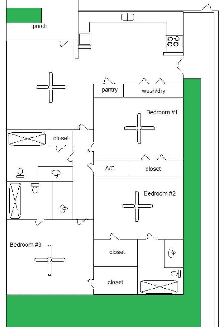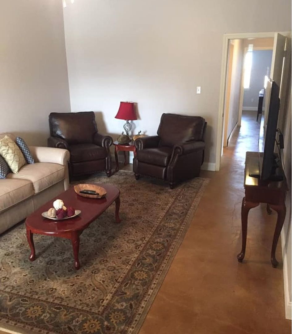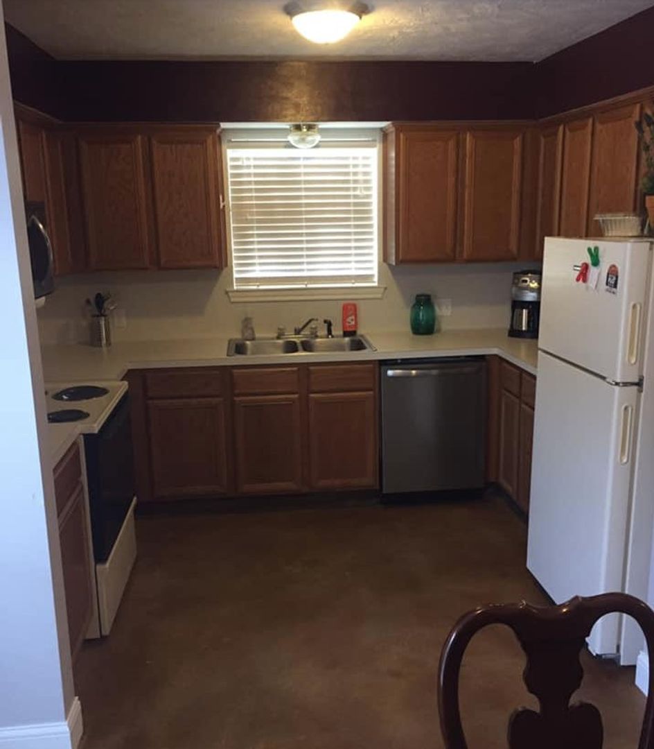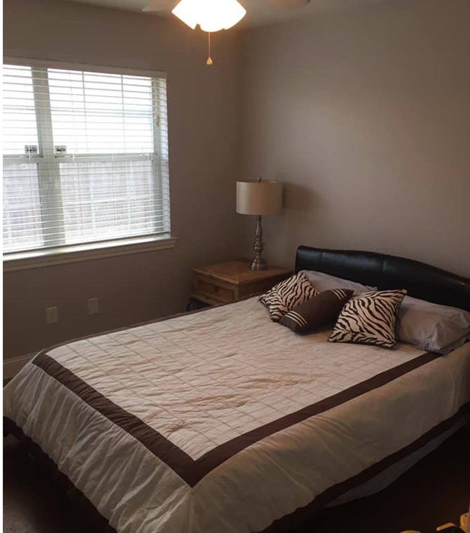 Brand-new updates hitting this 3 bed / 3 bath College Station duplex before move-in — kitchen cabinets refreshed or replaced, new black stone countertops, updated vanities, and fresh paint throughout.