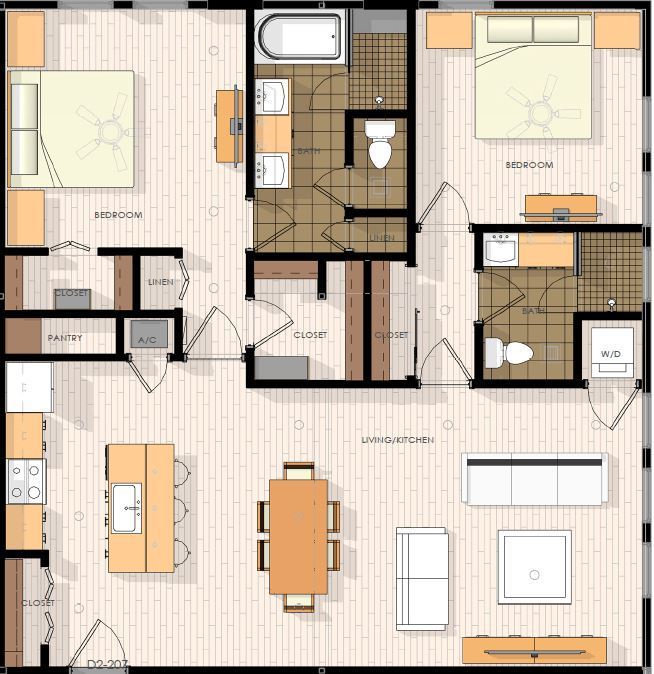 Designer 2 Bed / 2 Bath Apartment with Spa-Style Bath